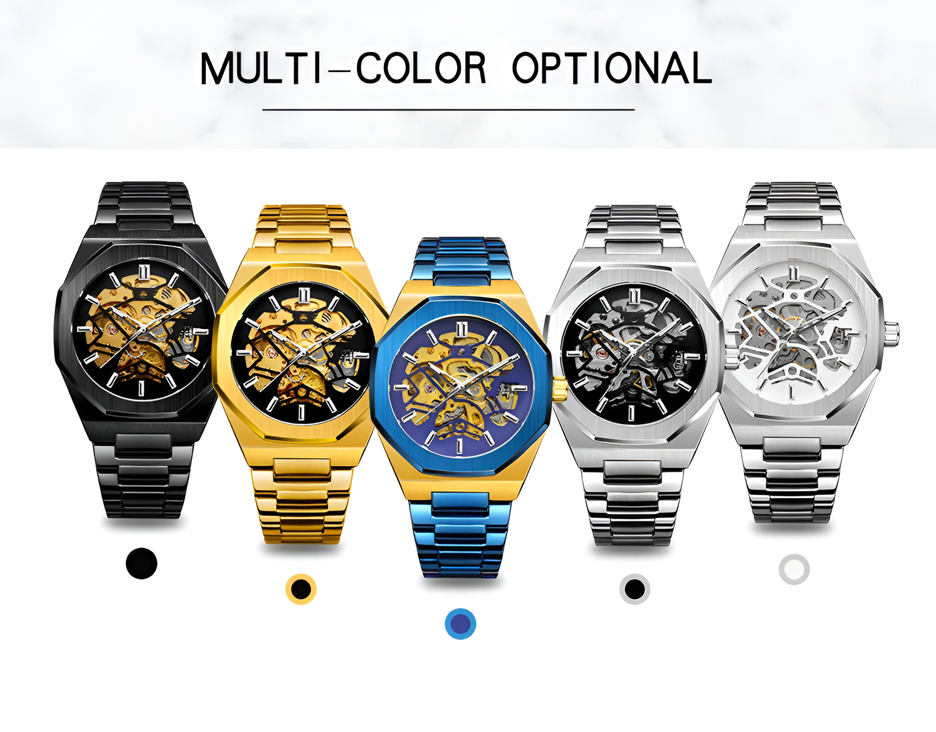 Our pieces are crafted from high-quality materials such as stainless steel, tungsten, and cubic zirconia to ensure durability and long-lasting shine. Most items are waterproof and resistant to tarnishing, making them suitable for everyday wear. Watches are water-resistant but not fully waterproof. To maintain your jewelry, avoid harsh chemicals and store items in a dry place when not in use.